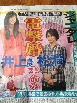https://matome.naver.jp/odai/2137675434897639701井上さんは2013年8月のスポーツ新聞にて嵐の松本潤さんと結婚報道がされていましたが、以降スクープなども上がり、熱愛が囁かれていました。