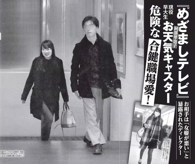 「Aは大学時代、サークル内の複数の女性に手を出してサークルを出禁になったとの評判。『めざまし~』に異動する際の歓送迎会では、元彼女からのビデオメッセージが流れ『優しかったけど、女癖は悪かったね』と暴露されていた」(制作会社関係者)