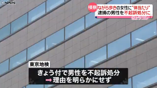 男性は同駅通路で歩きスマホをしていた50代女性に対しても同様の行為をしていたとして追送検されたが、共に不起訴となった。