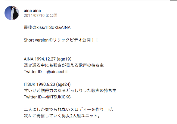 アイナ・ジ・エンドさんは、BiSHで活動する前にYouTubeでも活動していたようでそこに年齢が記載されています。