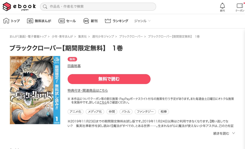 そのため、ブラッククローバーを無料では読むことができません。