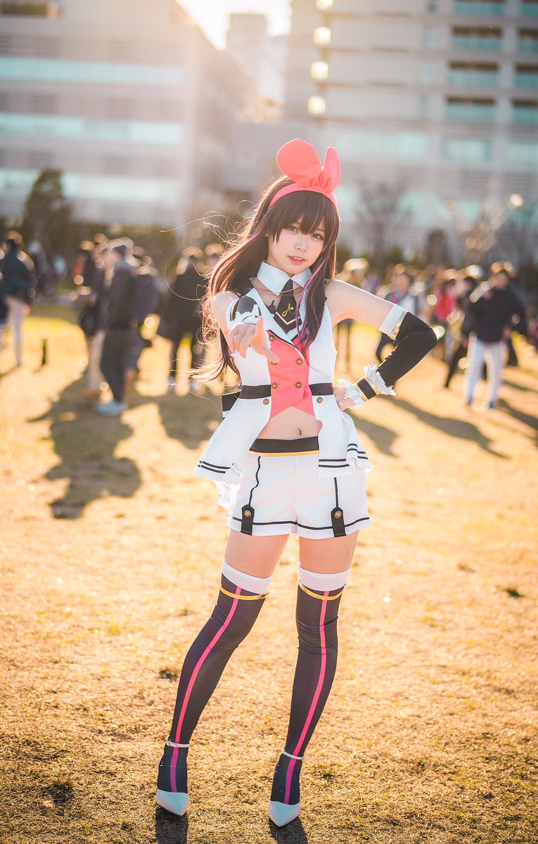 コミケに参加するたびにファンを増やしており、今一番勢いのあるコスプレイヤー。C95の3日目では、人気コスプレイヤーの五木あきらさんや伊織もえさんよりも多くの人が押し寄せ、運営から強制で撮影をストップさせられる程でした。