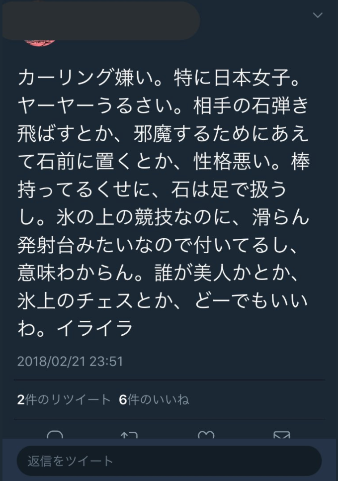 「「「カーリング女子嫌い」ってわざわざつぶやく人種が嫌い」ってわざわざつぶやく人種が嫌い」ってわざわざつぶやく人種が嫌いなんですが、わかる人いませんか