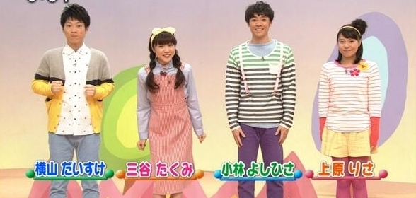 三谷たくみおねえさんの離脱は残念だが、彼女も30歳を目前として、だいすけお兄さんと結婚するのだろうか...8年間も禁欲続けてきたんだろうな...スゲェなぁ。でも体操のお兄さんが最近薄毛になってんのが心配だなぁ...。