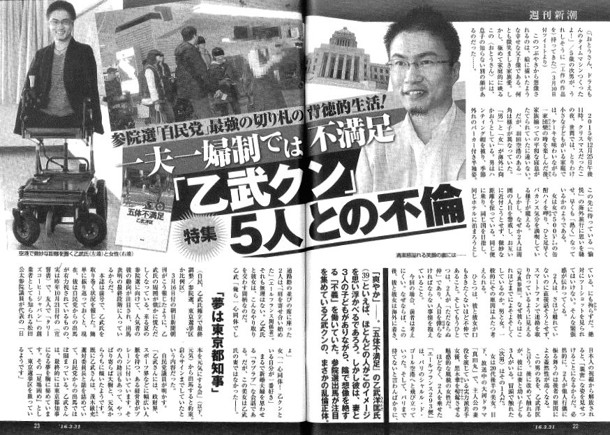 https://gendai.ismedia.jp/articles/-/67261報道に寄ると乙武さんは当時5人の女性と不倫関係にあったようですが、複数人居たという時点でかなりの女好きであったことは間違いないでしょう。