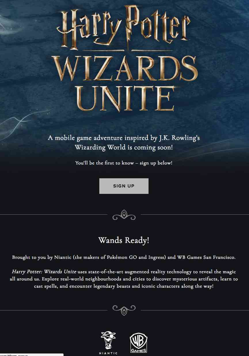 ハリポタGOの開発発表に合わせて、ハリポタGO公式サイトがオープン。このサイトでは自分のメールアドレスでサインアップすることができるようです。現在はサインアップしかできませんが、リリースが近づけばこの公式サイトから事前登録ができるようになるのではないかと言われています。