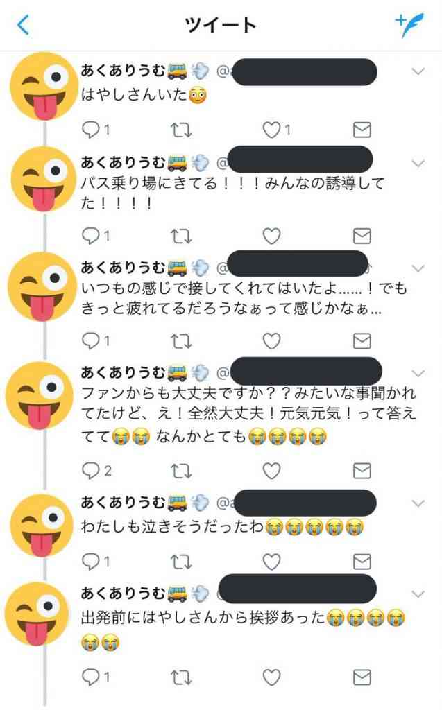バスツアーは予定通り催行されております。ツアーの内容をSNS等であげるのは禁止事項の為詳細は申し上げられませんが、財木さん自身、逃げずにきちんと私たちと向き合ってくださっております。