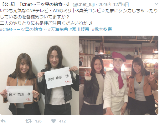 大胆な手ぶらショットで話題となっている橋本梨菜さん。現在ではグラビアアイドルとしてのイメージがかなり強いですが、実は2016年に放送されたドラマ『Chef~三ツ星の給食~』では、シェフ役として出演しています。