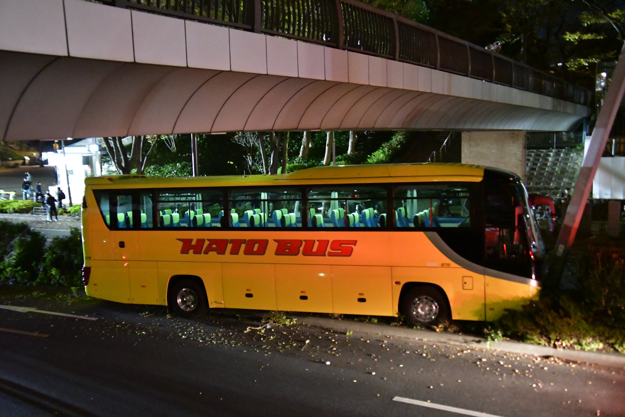はとバスによると、44人乗りの観光バスで、コース運行中だったが、事故時は乗客とバスガイドは食事のために別の場所で降りており、バスの車内には運転手が1人だった。