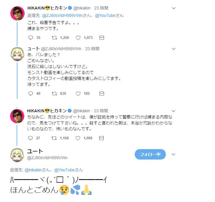 殺害予告を受けても注意だけで済ませるヒカキン有能