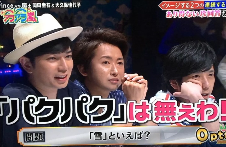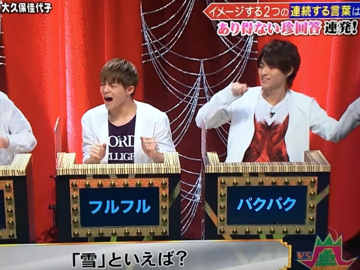 VS嵐の1コーナー「アラアラ嵐」は、「〇〇といえば?」というお題に対し、メンバーがイメージする擬声語を回答するコーナー。