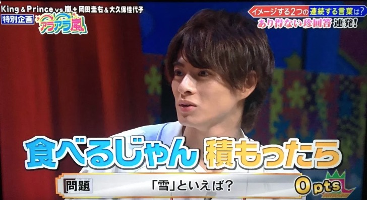 「雪といえば?」というお題に、他のメンバーが「コンコン」や「シンシン」と答えている中、平野紫耀さんは「パクパク」と回答。