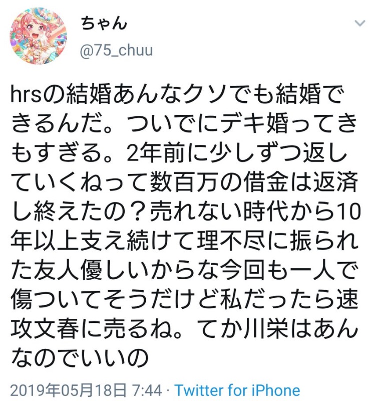 やっと理解した、川栄のあの発言は、夫に対してのブチギレツイートだったわけね?