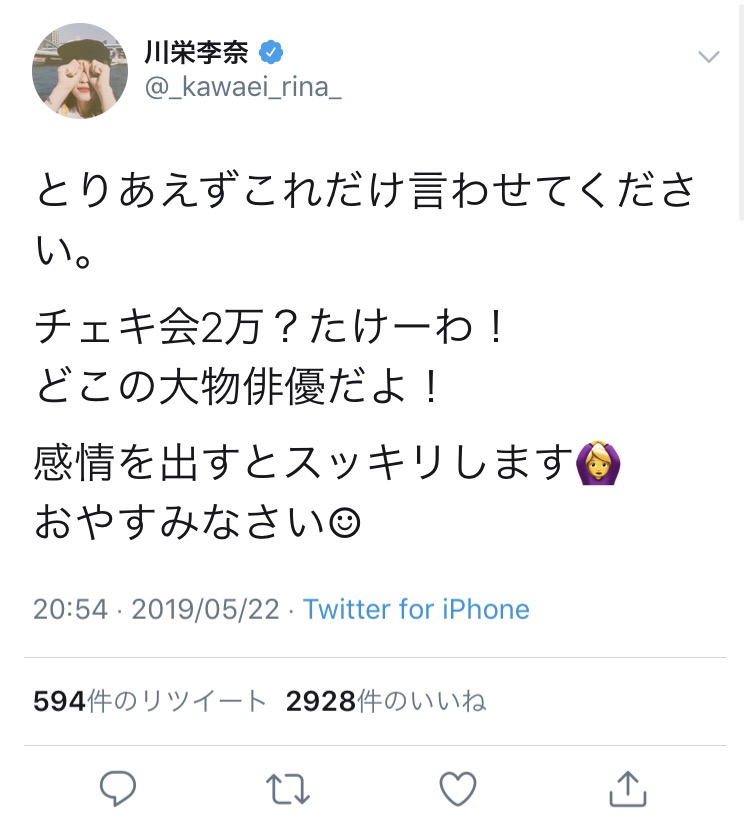 Twitterの反応の後に、二股報道に対しての川栄李奈さんのツイートを紹介します。