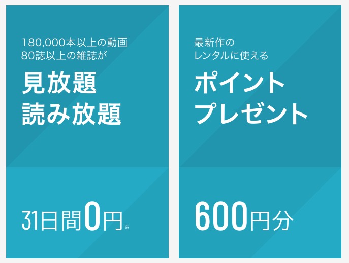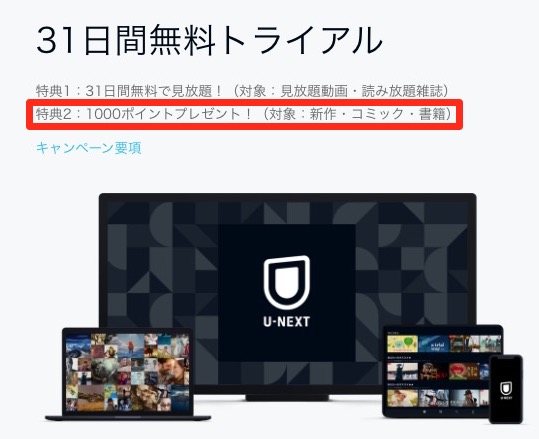 それでは早速そのお得な紹介ページをご紹介しますので、是非こちらから無料登録して31日間見放題と1,000円分のポイントをGETしてください。