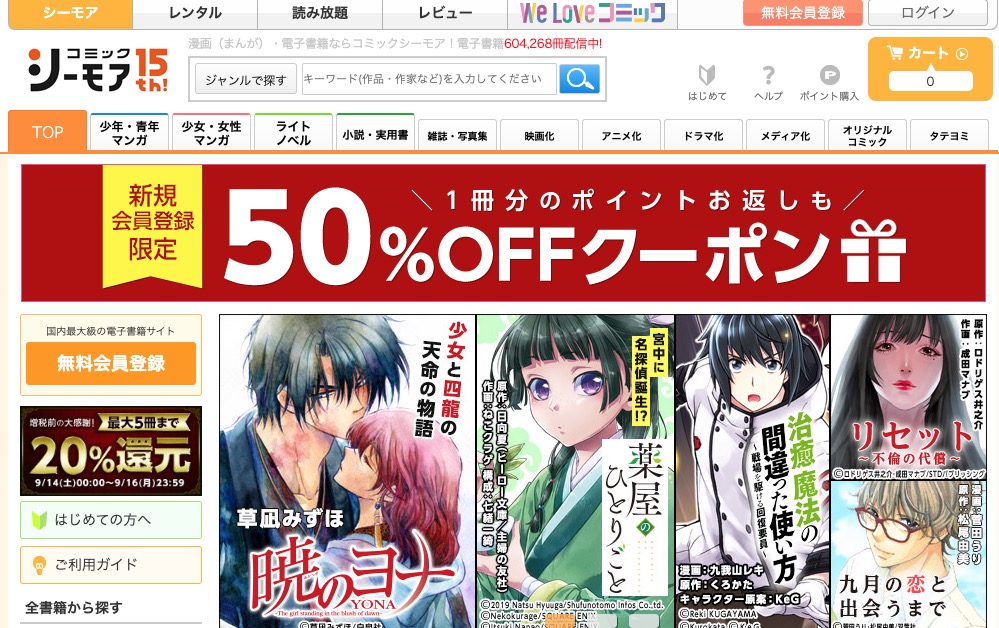 また、これから新規会員になる方は全作品50%OFFのキャンペーンを実施中。
