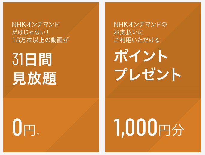 ここで気になった人も多いかもしれないので、注釈しておくと、「最新作のレンタル」と「NHKオンデマンドのお支払いご利用いただける」のポイントに違いはあるのか?だと思いますが、このポイントに違いはありません。