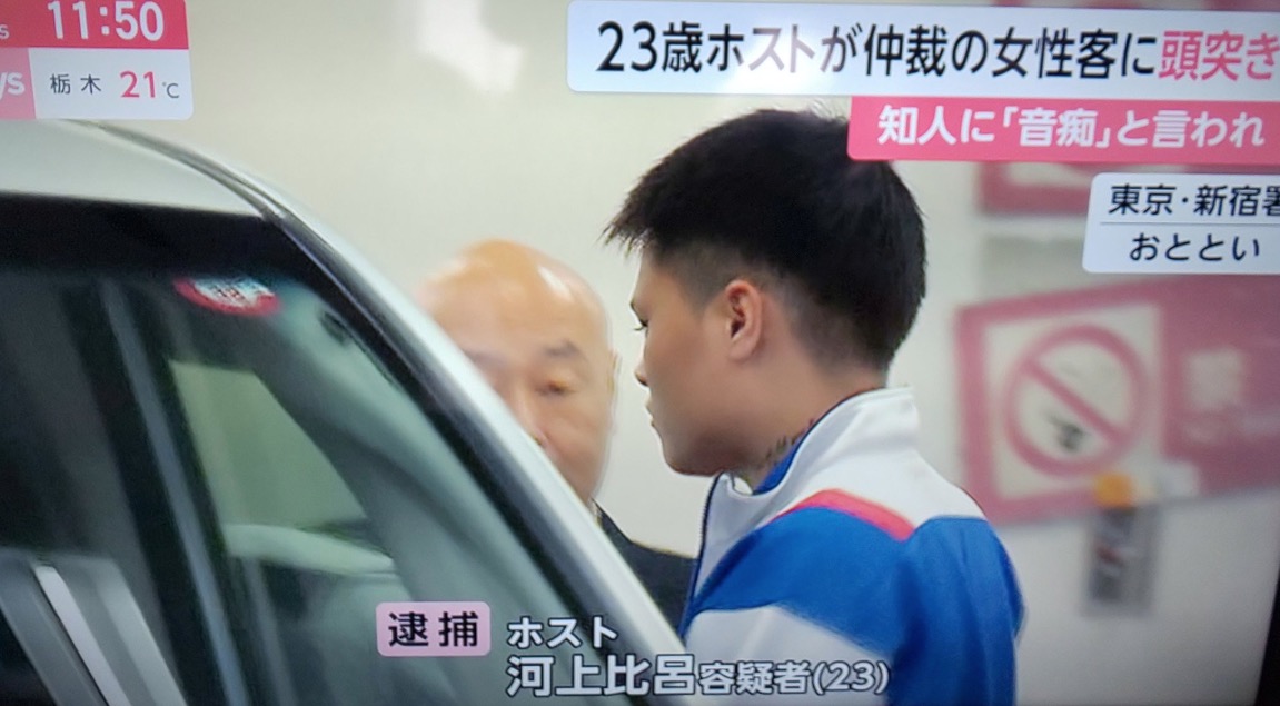 2019年10月17日、新宿区歌舞伎町のカラオケ店で女性に暴行をしホストクラブ従業員の河上比呂容疑者を逮捕。