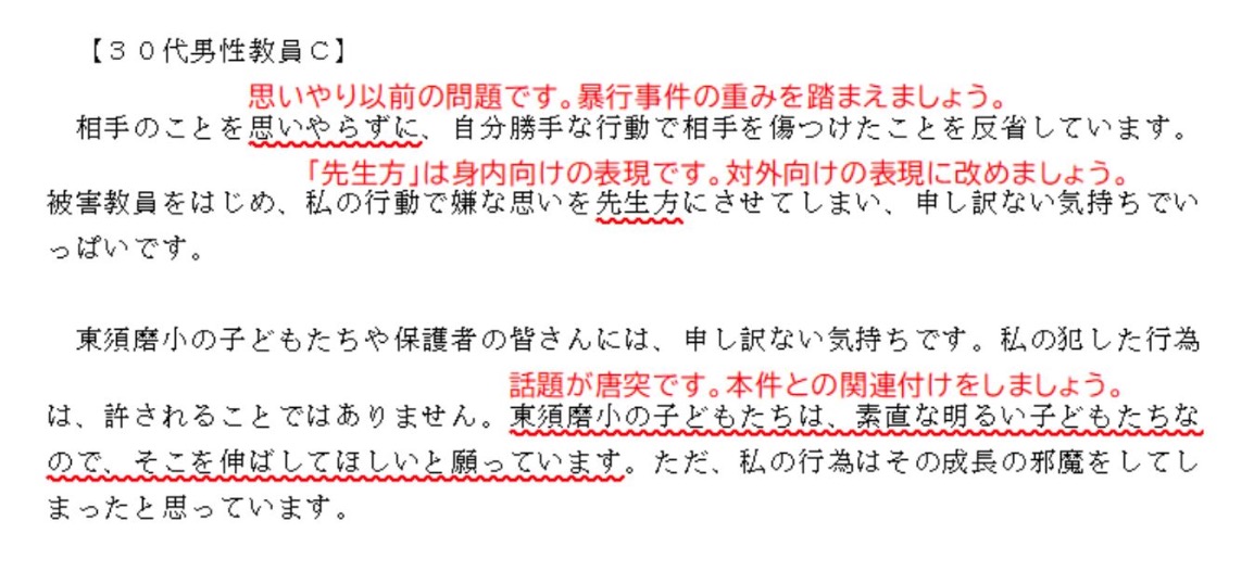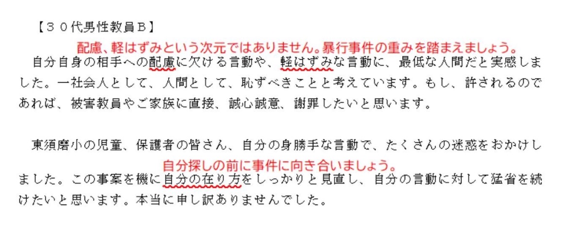 神戸・教員暴行事件の「加害4教員謝罪の言葉」が謝罪文としてひどかったので赤ペン先生をしてみた。