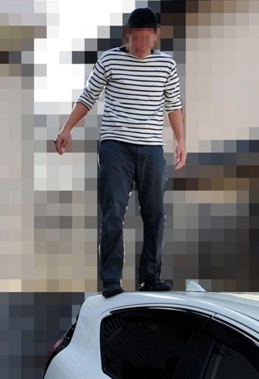 こちらの画像は、男性教員の車の上に乗っている加害者教員の様子。