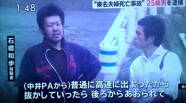 石橋容疑者「そこ(追い越し車線)に止まったから」