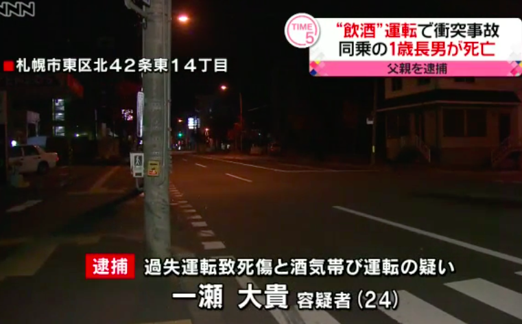 北海道札幌市で22日夜、飲酒運転で事故を起こし同乗していた1歳の長男を死亡させたなどとして24歳の父親が逮捕されました。