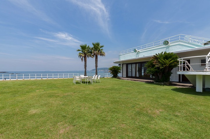 神奈川県の葉山にある豪邸で、敷地面積は500坪。家の前には海が広がり、後ろには山が広がっています。