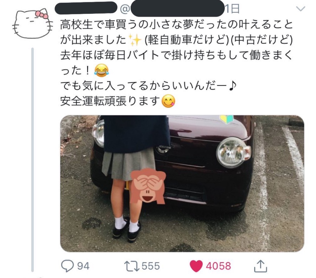 2019年9月、Twitterで女子高生が車を購入し、納車したツイートが炎上。