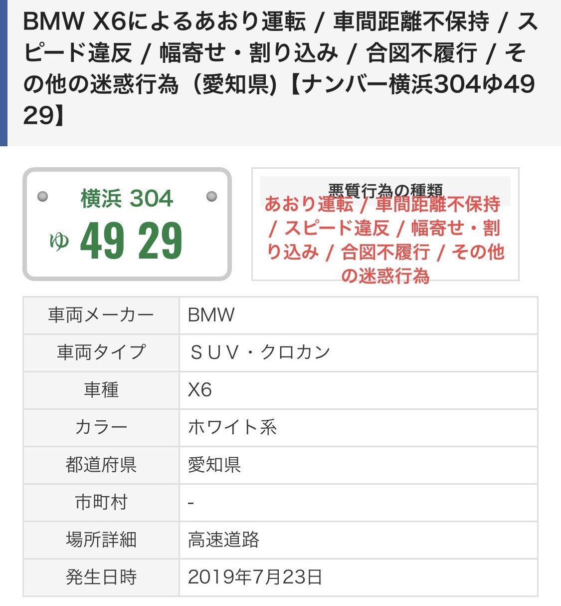 現在、常磐道や静岡で煽り運転をしていた犯人の車の車種・ナンバーが特定されています。