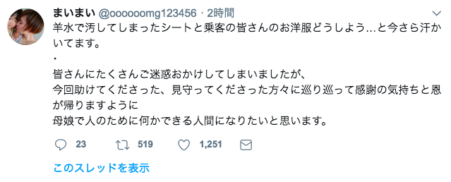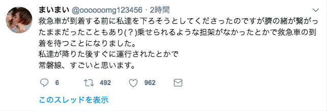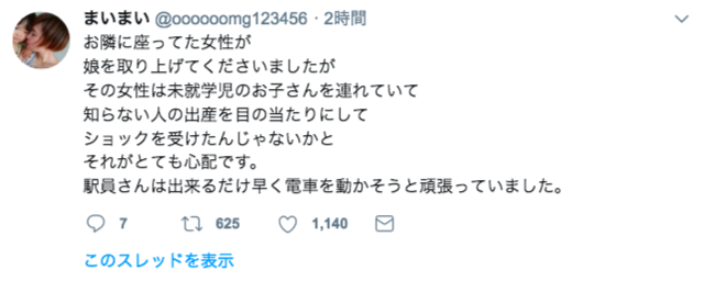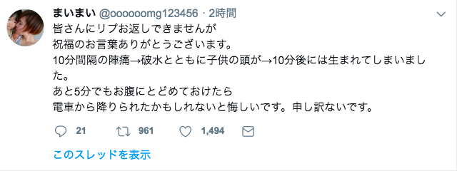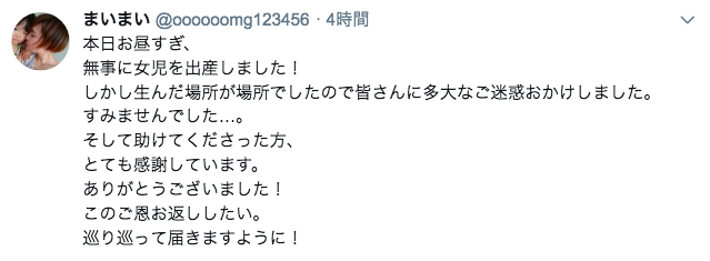 常磐線で出産をした母親はその後、産まれてきた子供が無事だった報告と、迷惑をかけた事への謝罪を自信のTwitterでツイートしました。