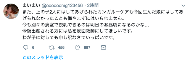他にもツイートされているのですが、現在まいまいさんのTwitterは鍵がかかっており見る事が出来なくなっているようなので、画像で紹介しておきます。