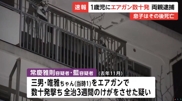 常慶雅則、常慶藍両容疑者を逮捕 息子にエアガン数十発その後死亡