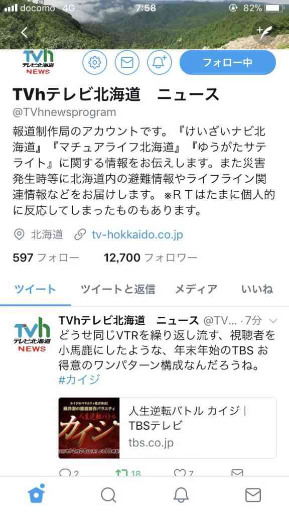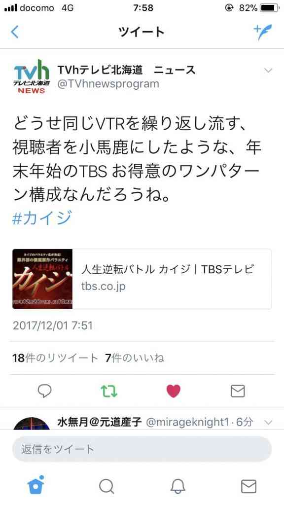 我らがtvhさんが香しいツイートをされていました。視聴者の気持ちを代弁するtvhはメディアの有るべき姿をしている。他局は見習うべき! #tvh #tbs #カイジ pic.twitter.com/MsZLCDqLhr
