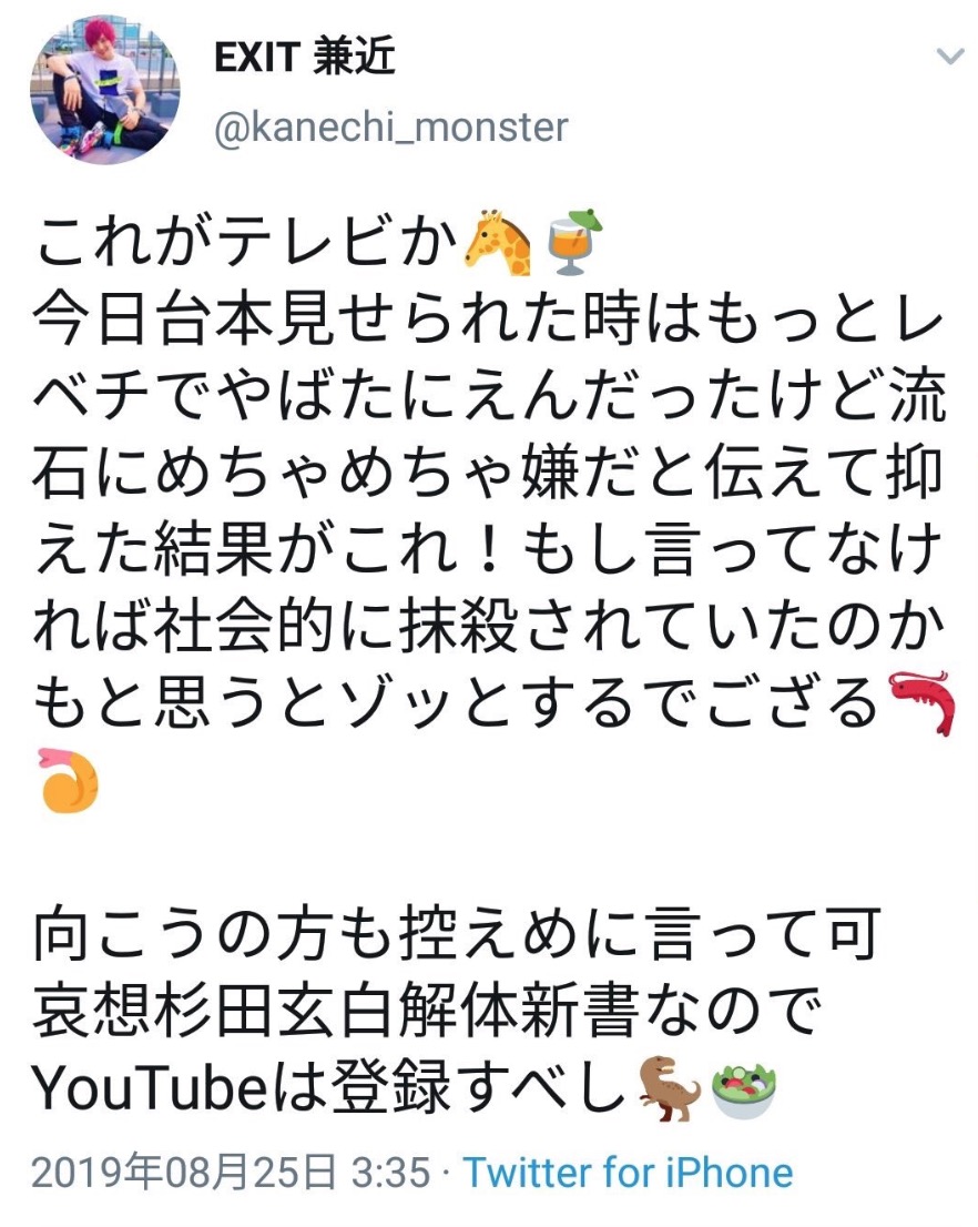 そして放送終了後、EXIT・兼近大樹さんとりんたろー。さんはTwitterを投稿。