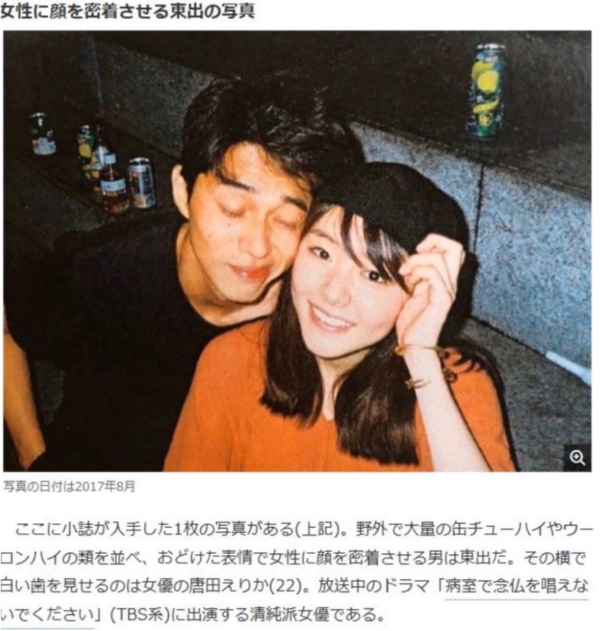 記事が本当だとしたら東出昌大と唐田えりかテレビで見たくないわ。芸能界から消えてどうぞ、サヨウナラ