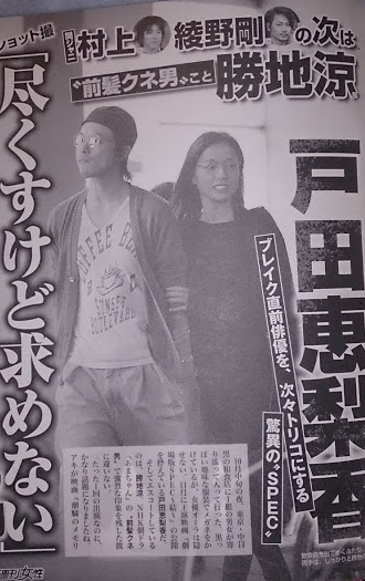 しかしその後、勝地涼さんは戸田恵梨香さんとの熱愛が報じられため、破局したようです。
