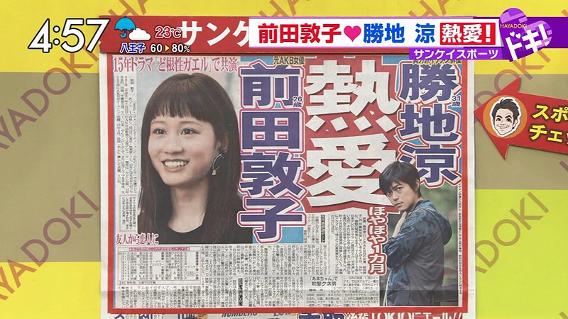 2018年5月7日、勝地涼さんと女優・前田敦子さんの熱愛が報道されました。