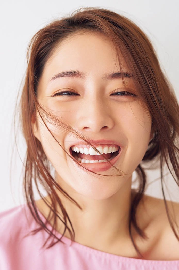 ぱっちりとした大きな二重の目が特徴的ですが、笑顔の時に見えるきれいな歯白い歯も印象的です。