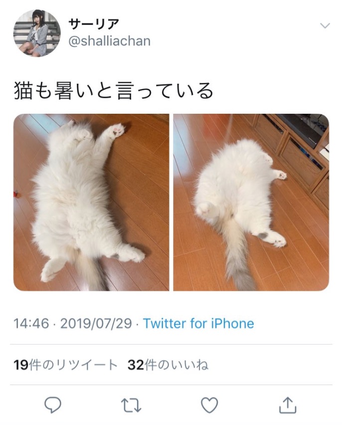 サーリアさんが投稿した猫の画像と、社長が飼っている猫が「全く一緒」と言われているのです。
