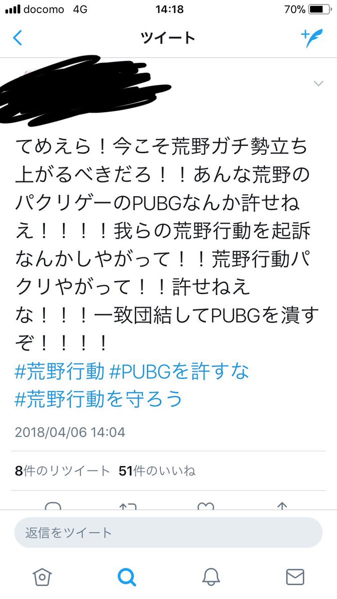 ヤバすぎwww#PUBG #荒野行動#PUBGを許すな #荒野行動を守れ pic.twitter.com/AOoD9TeEa8