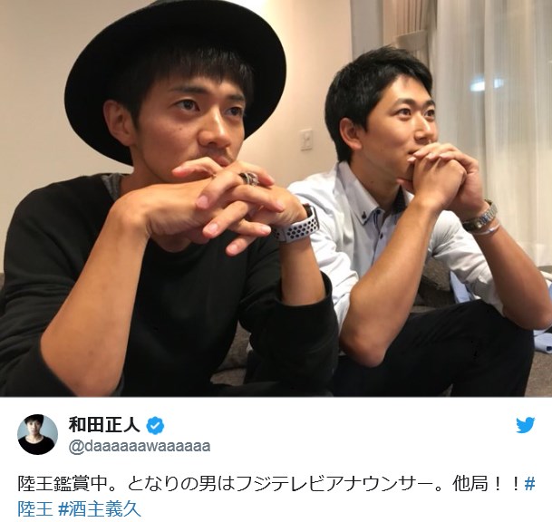 室内と思われる場所に、並んで座っている桑子真帆アナウンサー。和田正人さんが出演していたドラマ『陸王』を見ているという内容のツイートでした。