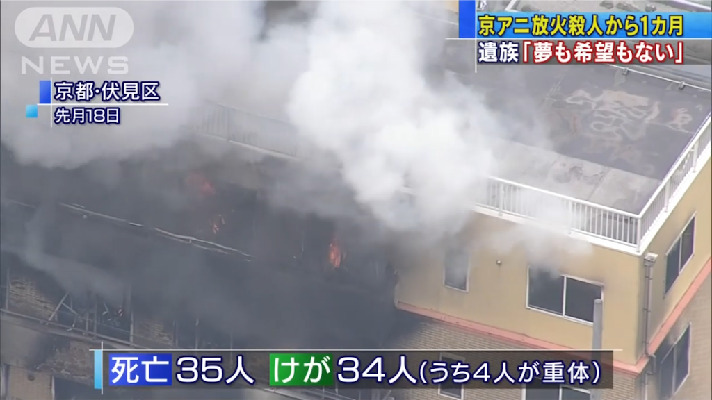 2019年7月18日、京都アニメーション第1スタジオで起きた放火事件。
