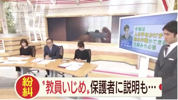 無理やり激辛カレーを食べされるなど、後輩の教師にいじめを繰り返していた4人の教師。保護者への説明会では動画にショックを受けた児童への対応として給食のカレーを一時、中止することや動画が撮影された家庭科室を改修することが発表されたほか、加害教師4人の謝罪コメントが読み上げられました。