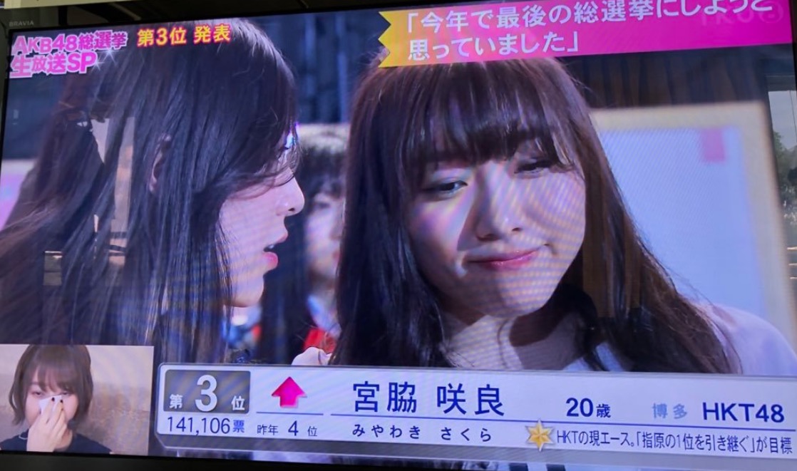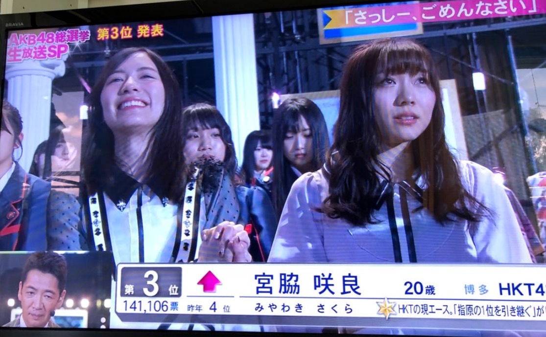 2位には同じくSKE48・須田亜香里さん。3位にはHKT48のエース・宮脇咲良さんが選ばれました。