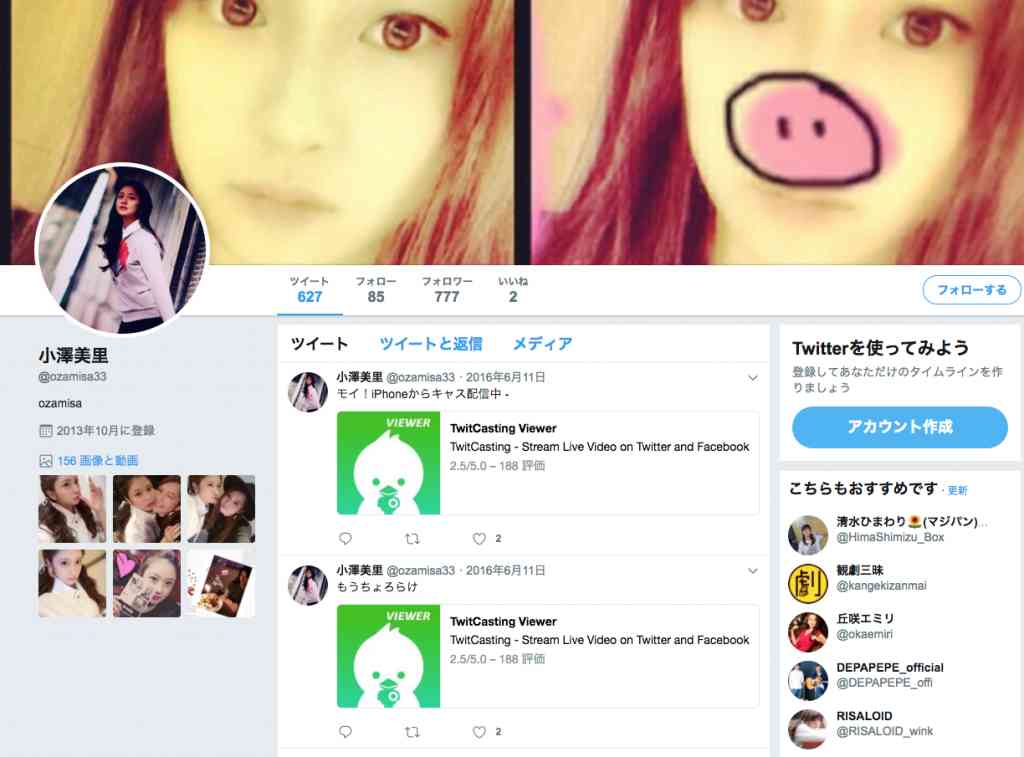 misato(小澤美里)さんのインスタグラムのアカウントは削除されていたものの、Twitterのアカウントはまだ存在していたようです。