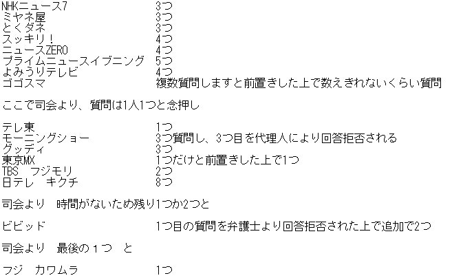 日本テレビの記者の質問しつこすぎる、質問3以上して最後に一つ、を数連発