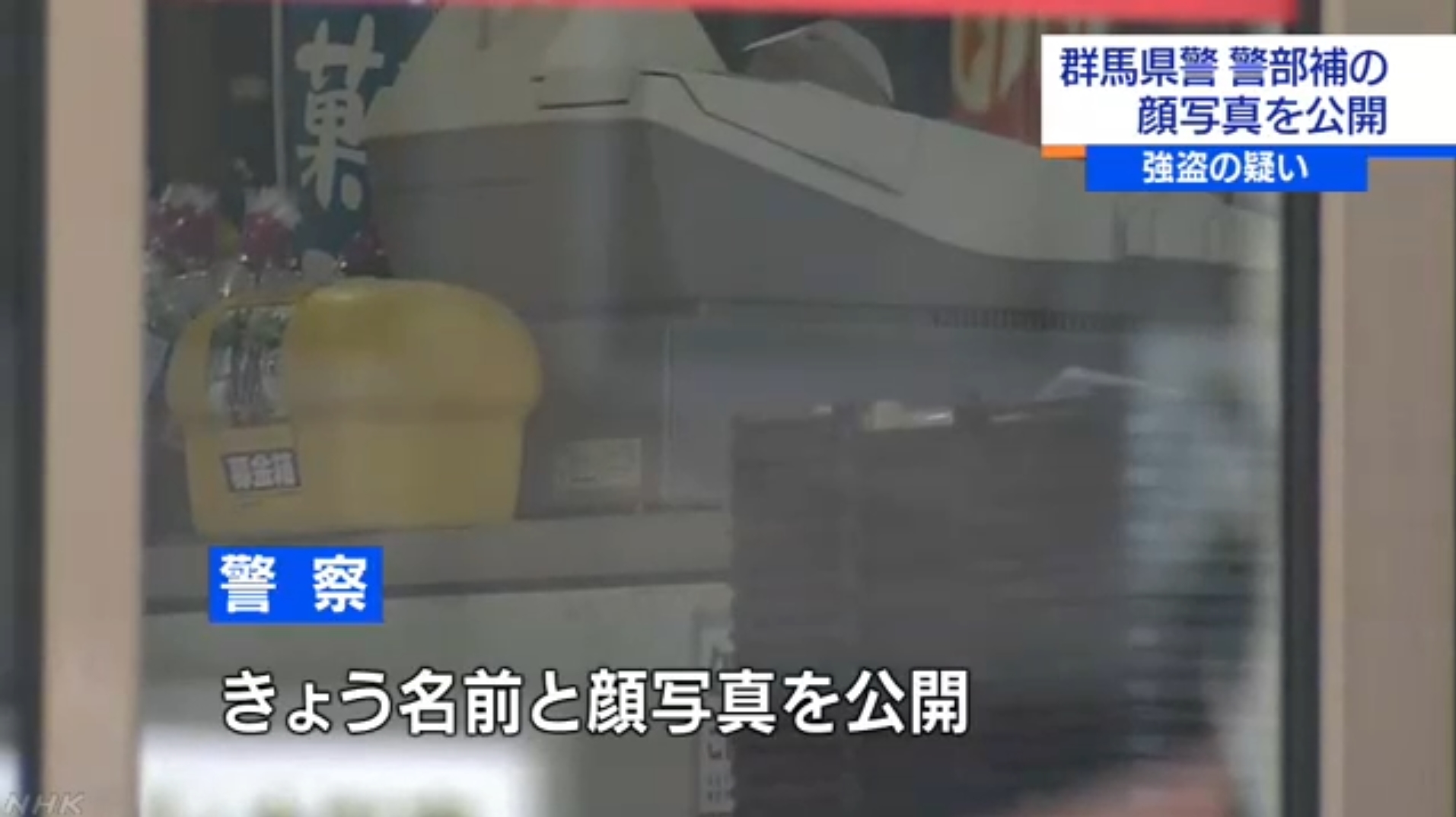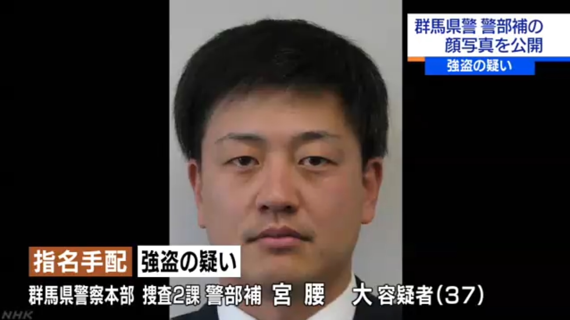 強盗容疑で指名手配されている群馬県警の30代の警部補の男が富山方面へ逃走<中略>同県警は警部補の名前を明らかにしていない。