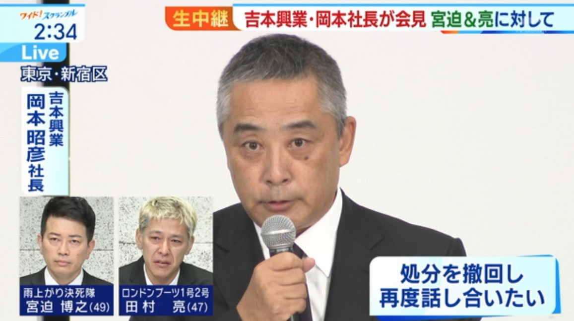 さらに、宮迫博之さんと田村亮さんの会見の後、吉本興業社長の岡本社長も会見を開きました。