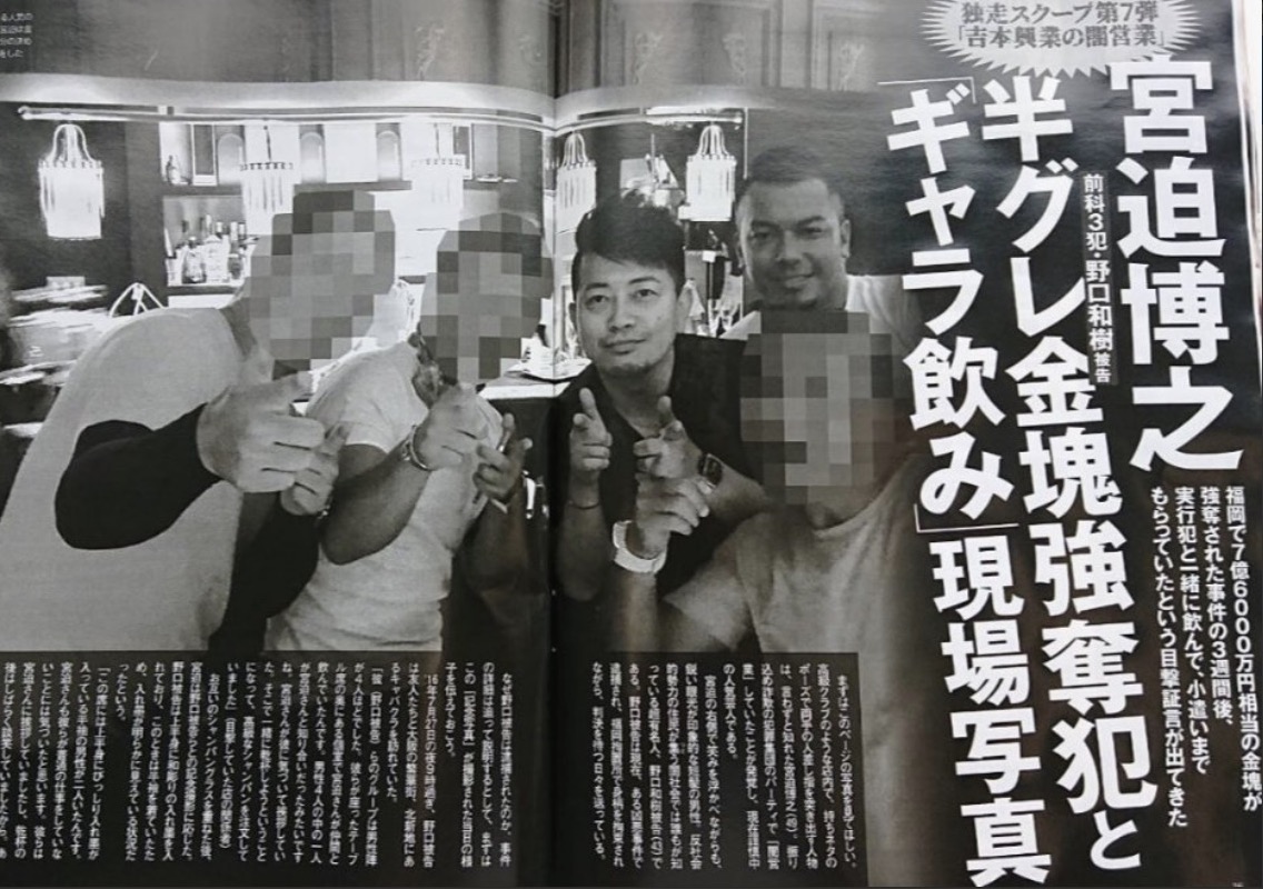 記事によると、そのうちの1人は、同時期に福岡市のJR博多駅前で発生した約7億6000万円の金塊窃盗事件で窃盗罪に問われた人物。この写真撮影の後に、宮迫さんが男たちから現金で謝礼を受け取っていた、と報じている。