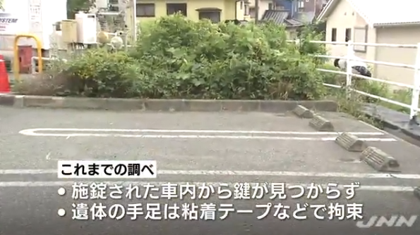施錠された車の中から鍵が見つかっておらず、遺体の手足は粘着テープなどで拘束されていたということです。